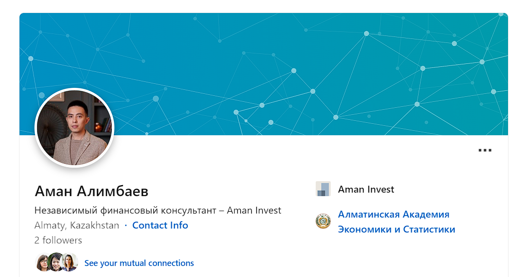 Аман Алимбаев действительно существующий финансовый эксперт. Информацию о нём часто публикуют казахстанские онлайн-журналы и информационные ресурсы. Судя по ней, Алимбаев закончил Алматинскую Академию Экономики и статистики и находится в степени магистра.