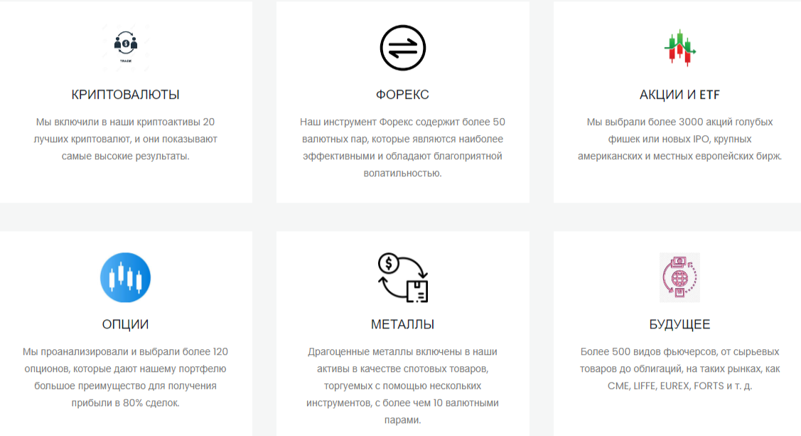 Основной деятельностью брокера являются посреднические услуги, оказываемые инвесторам. Сотрудничать с торговой платформой могут жители из 13 разных государств. Потенциальным клиентам организация предлагает торговать различными активами с хорошими спредами. Люди, занимающиеся трейдингом, здесь могут совершать сделки с большим количеством финансовых инструментов: криптовалюты, валютные пары, акции, драгметаллы, фьючерсы и т. д.