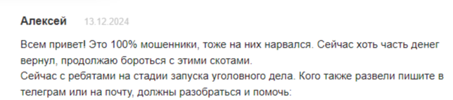 Негативные отзывы о работе брокера были выявлены на сторонних ресурсах в интернете. В них пользователи называют брокерскую компанию мошенниками и не рекомендуют сотрудничать с данным проектом.