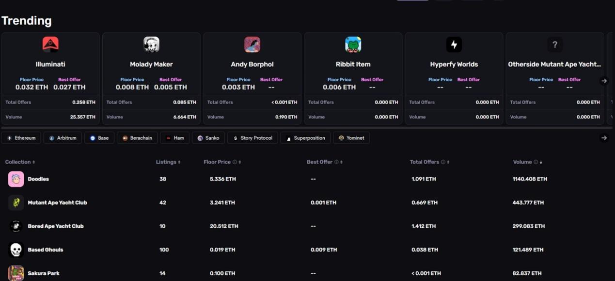 Все коллекции NFT представлены в соответствующем разделе сайта. Если нужны конкретные лоты, можно найти их через поисковую строку. На площадке есть НФТ с разной ценностью. Это зависит от продавцов, а не от самой платформы. Некоторые продавцы могут оказываться недобросовестными, это важно учитывать.