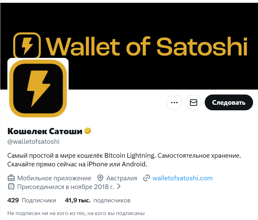 Для продвижения криптокошелька Wallet Of Satoshi разработчики представили ряд страниц в соцсетях. К примеру, профиль в Инстаграм можно найти по ссылке WalletOfSatoshi. На начало декабря 2025-го к нему подключилось свыше 1,4 тыс. человек. При этом число публикаций практически достигло отметки 40, что является солидным показателем.