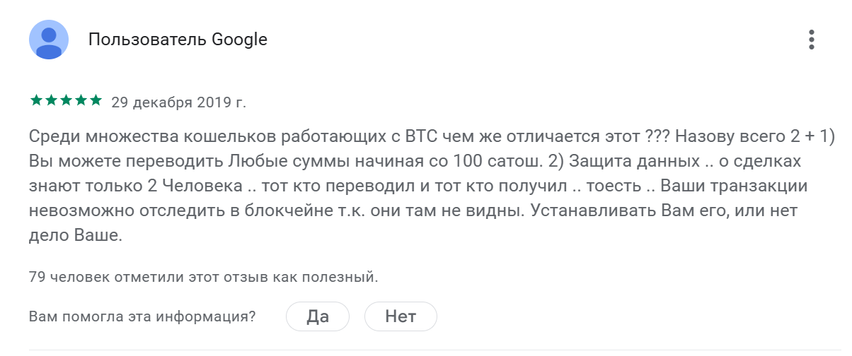 Встречаются и позитивные мнения, в которых клиенты отмечают высокое качество софта и доступ к проведению анонимных сделок с Биткоином.