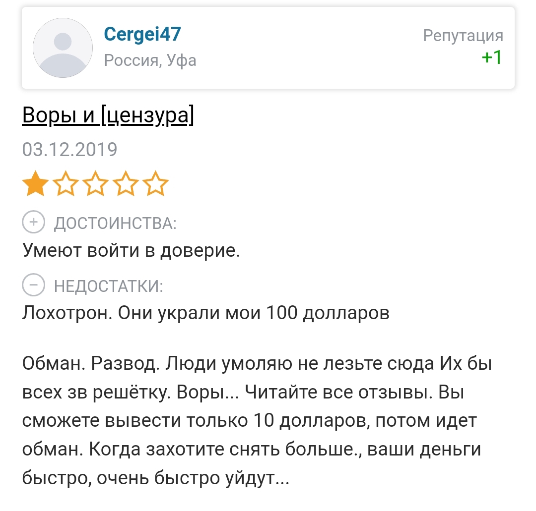 Однако компания не имеет лицензии, и её деятельность не регулируется. Она зарегистрирована в оффшоре, что вызывает сомнения в прозрачности её деятельности. Ее торговая платформа осуществляет торговлю локально на сервере брокера, а не на мировом рынке. Это означает, что трейдеры делают ставки, а не реальные сделки. Кроме того, возникают проблемы с блокировкой аккаунтов клиентов и пропажей денег при выводе.