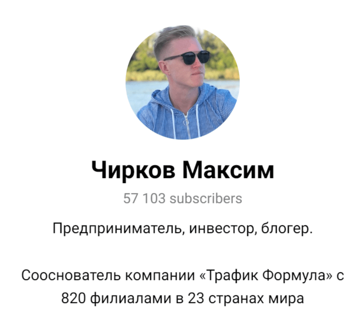 Для продвижения своего бренда предприниматель, блогер и инвестор создал собственный канал в Телеграмме — maxchirtop. Он собрал около 57 тыс. фолловеров и запущен еще 2 июля 2020-го. Автор регулярно добавляет новые записи и даже открыл комментарии для общения.