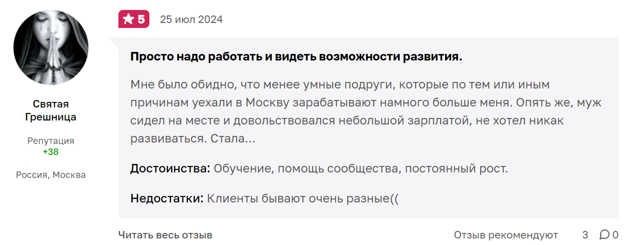 Некоторые пользователи довольны сотрудничеством. Они отмечают интересную работу, хорошие перспективы развития, хорошее сообщество и поддержку. Также отмечается наличие обучения.